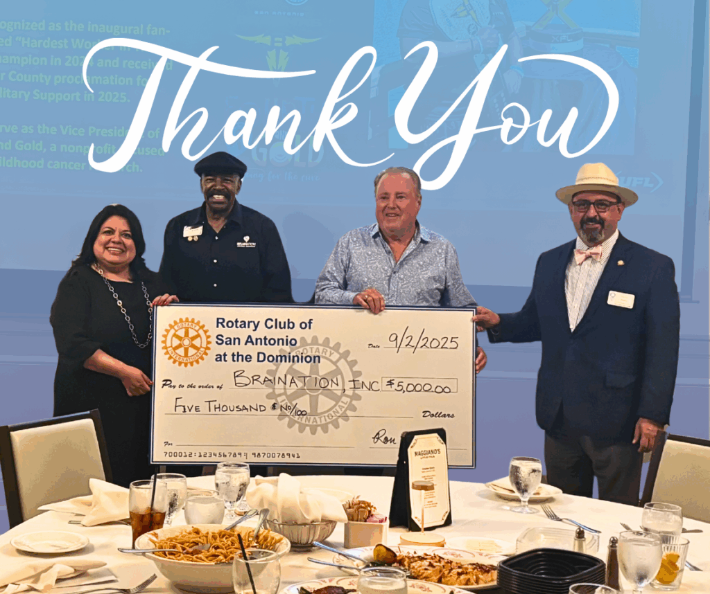 The BRAINATION Foundation is overjoyed to announce a major fundraising boost for a new playground at Legacy Ranch Kids in Gonzales, Texas. The effort was enriched by a generous donation from the Rotary Club of San Antonio at the Dominion, which was gratefully matched by a grant from District 5840. Together, these contributions have brought […]